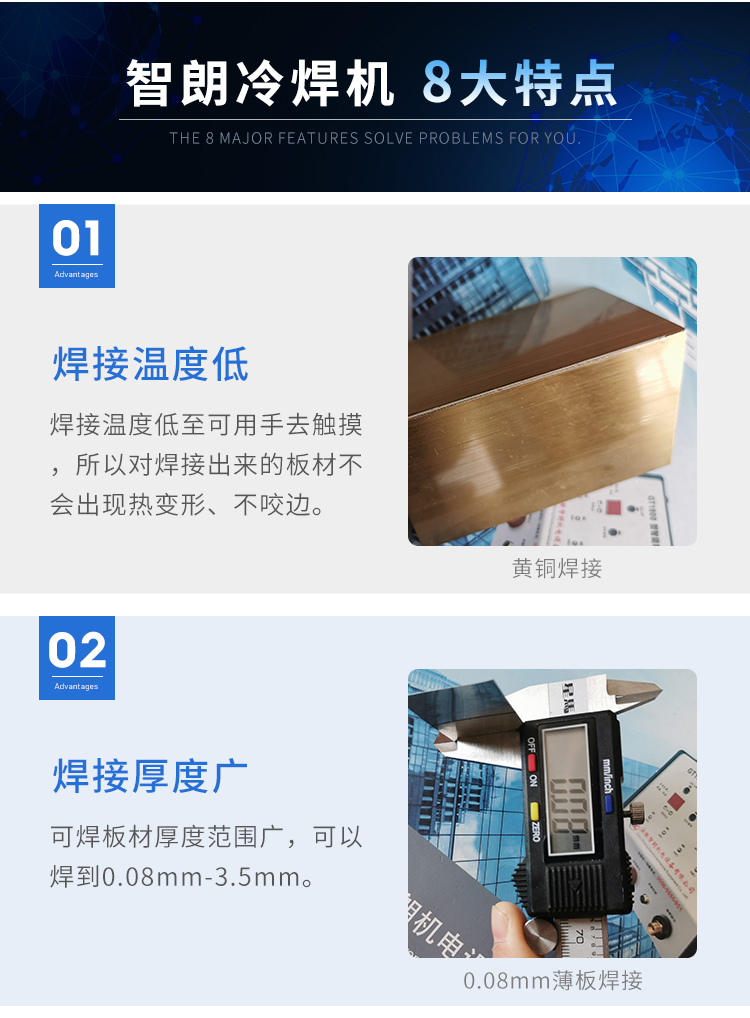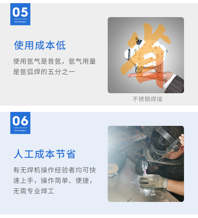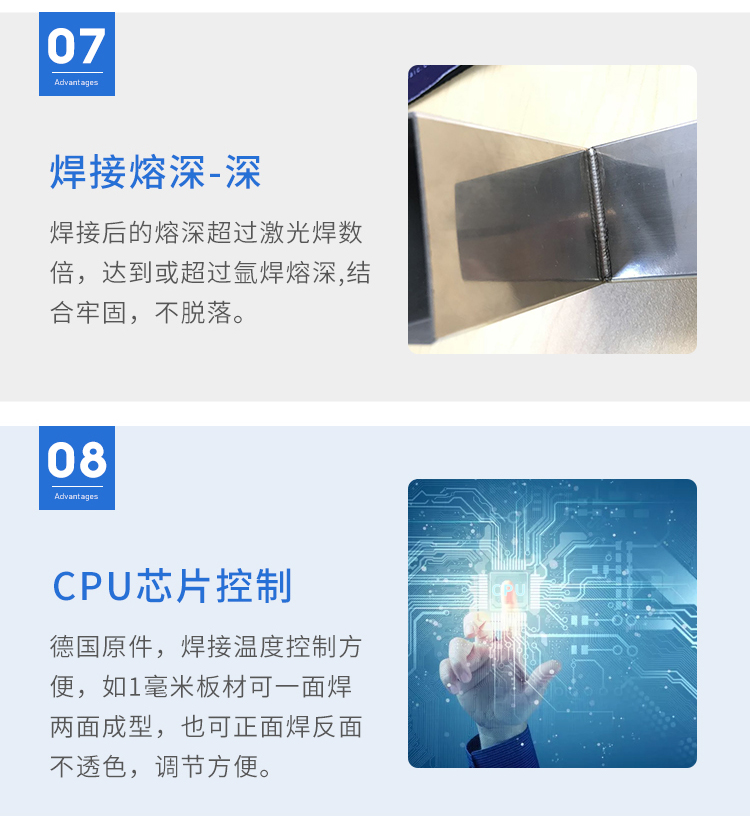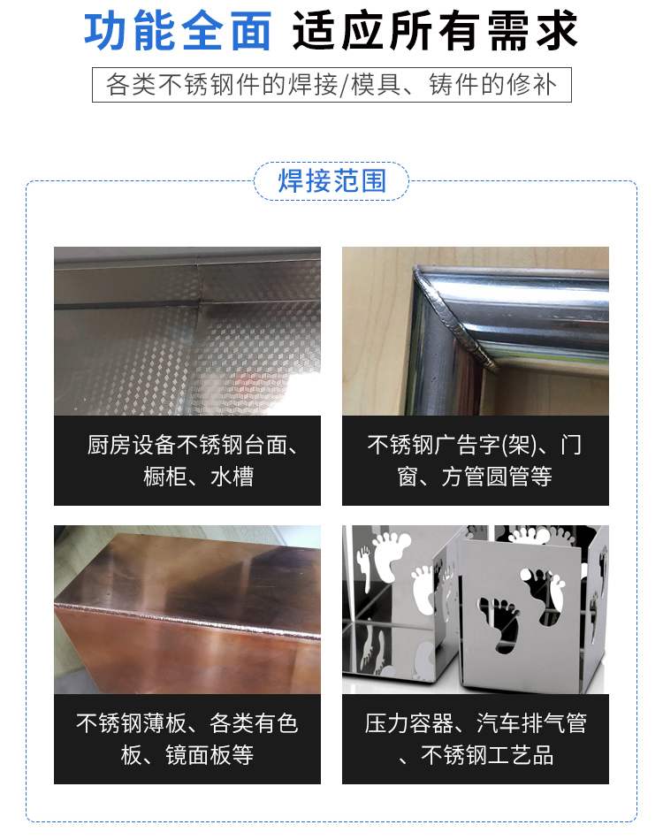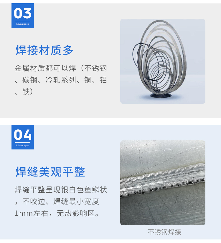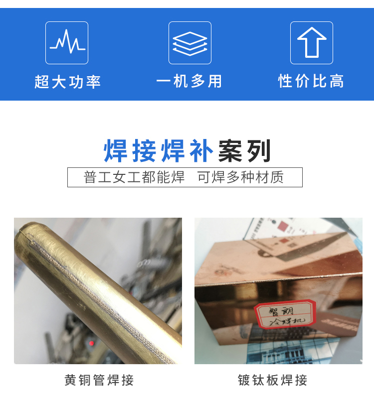 該設(shè)備體積小、功率大、效率高,針對(duì)傳統(tǒng)行業(yè)對(duì)焊工的高要求水準(zhǔn),該焊機(jī)對(duì)無(wú)操作經(jīng)驗(yàn)者均可快速上手,焊點(diǎn)呈現(xiàn)銀白色,后期無(wú)需打磨拋光。