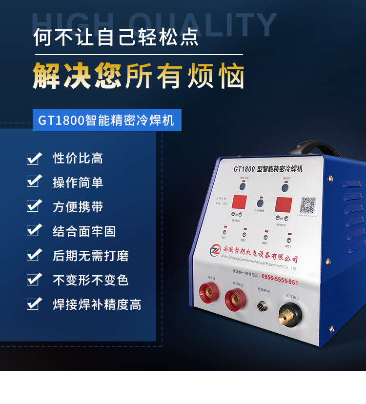 GT1800型智能精密冷焊機(jī)是安徽智朗機(jī)電在2019年研發(fā)推出的又一款新型智能焊接焊補(bǔ)機(jī)。該機(jī)從功能和實(shí)用性上都有較大的飛躍,是一種更為專(zhuān)業(yè)、更為精密的焊接、焊補(bǔ)設(shè)備。該機(jī)采用CPU控制,實(shí)現(xiàn)了脈沖電壓和脈沖時(shí)間的可調(diào)及儲(chǔ)存,從而可以根據(jù)工件焊后的缺陷特點(diǎn)調(diào)節(jié)到高效焊接和焊補(bǔ)功率,使焊機(jī)的焊接和焊補(bǔ)精度可以達(dá)到甚至超過(guò)激光焊機(jī)的焊接和焊補(bǔ)精度,同時(shí)又兼有氬焊的速度及靈活性。